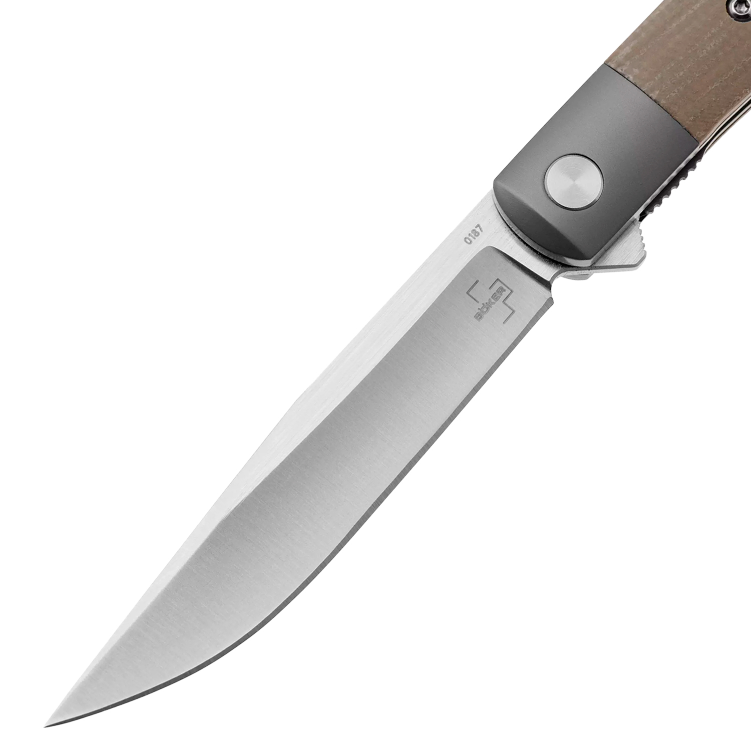 • Механизм открытия и закрытия складного ножа. Это ключевая составляющая раскладного ножа. Распространенными являются механизмы: фрейм-лок (благодаря которому обеспечивается устойчивая фиксация клинка в раскрытом положении), лайнер-лок (который предусматривает фиксацию клинка в открытом положении при помощи специального выкидного лайнера), бэк-лок (классическая замковая система).