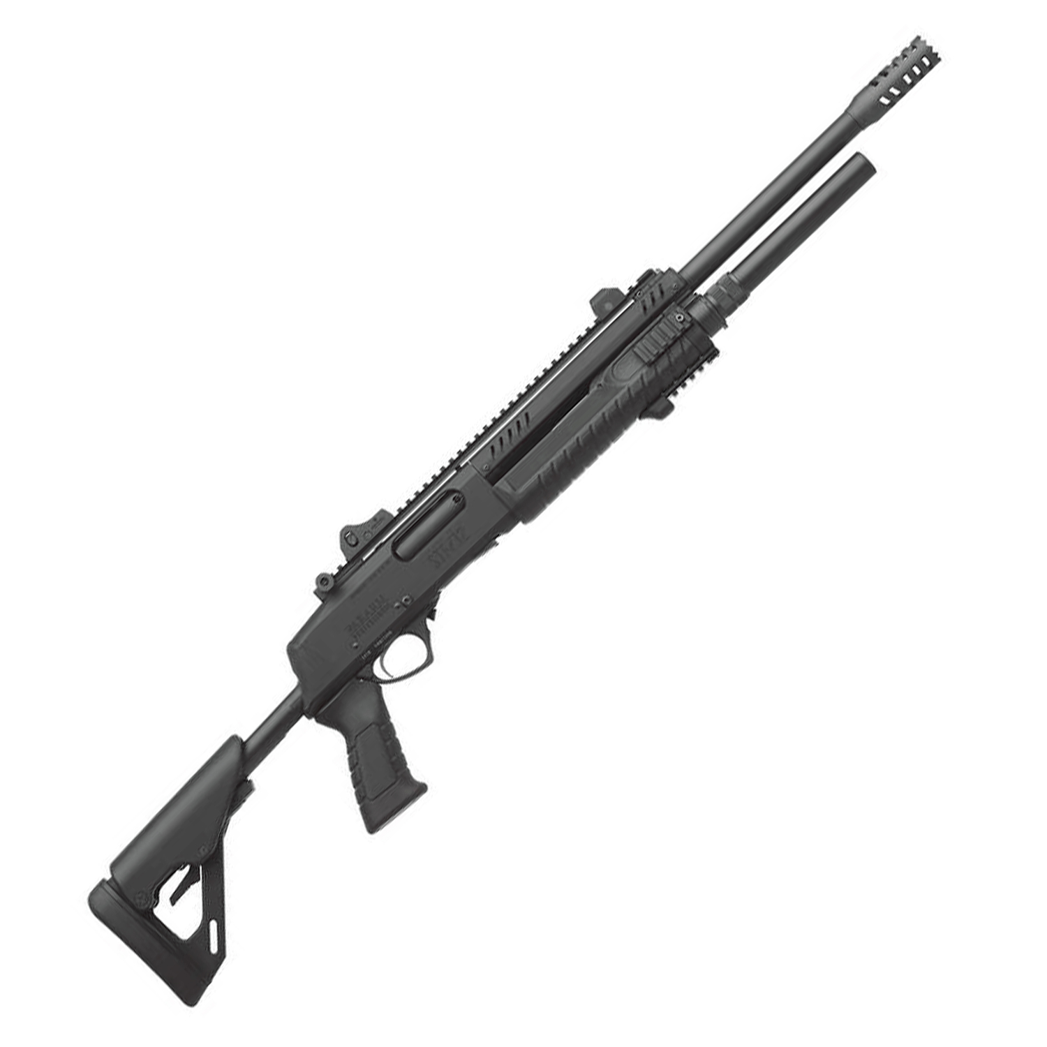 В нижней передней части цевья также имеется короткая планка Picatinny, на которую можно установить тактический фонарь или рукоятку переноса огня.