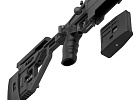 Orsis SE T-5000M: универсальный карабин отечественного производства под патрон .338 Lapua Mag, подходящий для спортивной стрельбы и охоты. Эта модель выделяется тактическим цевьем типа Quad Rail (QR), а также наличием продольных выемок на стволе, которые облегчают его и способствуют более эффективному отводу тепла при интенсивной стрельбе. В комплекте предусмотрена дополнительная опора – монопод.Карабин оснащен продольно-скользящим затвором с двумя боевыми упорами. Нарезной ствол вывешен свободно и имеет нарезы с шагом 6 дюймов. На дульном срезе установлен четырехкамерный дульный тормоз-компенсатор (ДТК). Усилие спуска настраивается. Складной приклад модели SE T-5000M оборудован амортизирующим затыльником, регулируется по высоте щеки и положению затыльника.Штатные прицельные приспособления не предусмотрены, однако на ствольной коробке имеется планка Пикатинни для установки оптических прицелов, приборов ночного видения и других аксессуаров. Дополнительные планки Пикатинни расположены на цевье сверху, снизу и по бокам, обеспечивая возможность крепления разнообразного обвеса. Все стальные элементы карабина изготовлены из высококачественной нержавеющей стали. Приклад, рукоятка и цевье изготовлены из прочного алюминиевого сплава. Трехпозиционный предохранитель гарантирует безопасное обращение с оружием.