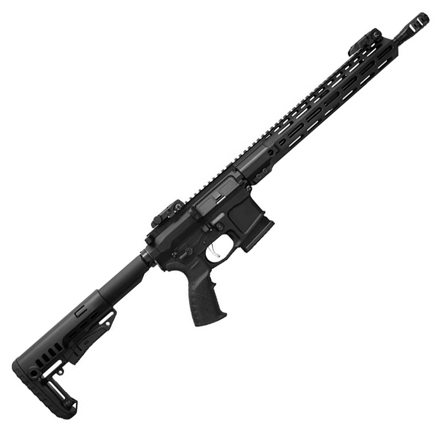 Тактический карабин СВК «Гост 13» от Sport Weapon CustomРоссийская компания Sport Weapon Custom представляет тактическую версию карабина СВК «Гост 13» под патрон .300 AAC Blackout. Модель построена на проверенной платформе AR-15 с газоотводной автоматикой, но включает ряд конструктивных и эргономических улучшений.Ключевые отличия от базовой платформы AR-15/M4:· Удобный дополнительный рычаг взвода затвора с левой стороны.· Отсутствие штатного досылателя затвора (forward assist).Основные характеристики и комплектация:· Калибр: .300 AAC Blackout (7,62х35 мм).· Ствол: Нарезной, длиной 300 мм (13 дюймов), производства «Молот-Оружие». Канал хромирован. На дульной части нарезана резьба 1/2"-28 UNF для установки глушителя или иных дульных устройств.· Система автоматики: Газоотводная.· Прицельные приспособления: В базовой комплектации — съемные и складные регулируемые мушка и диоптр. Верхний ресивер оснащен планкой Пикатинни для монтажа оптических, коллиматорных или ночных прицелов.· Цевье: Из алюминиевого сплава с черным покрытием. Имеет перфорацию по стандарту KeyMod на трех сторонах для крепления тактических аксессуаров (фонаря, рукояти, сошек, ЛЦУ).· Приклад: Телескопический типа DLG Comspec, с несколькими фиксированными положениями для регулировки по длине.· Магазин: Отъемный, типа PufGun AR-15 G2, емкостью 10 патронов.· Безопасность: Флажковый предохранитель.· Эргономика: На оружии установлены антабки для крепления ремня.Карабин СВК «Гост 13» в тактическом исполнении — это современное полуавтоматическое оружие, адаптированное под мощный патрон .300 BLK. Модель сочетает надежность конструкции AR-15 с продуманной эргономикой, модульной системой креплений KeyMod и готовностью к установке как механических, так и оптических прицелов.